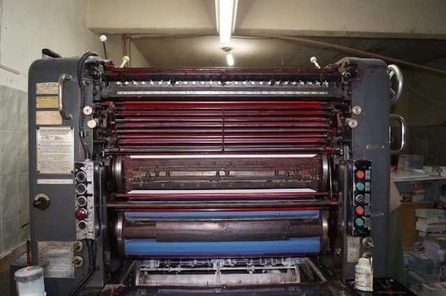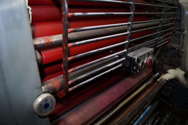 Máquina rodando na gráfica.