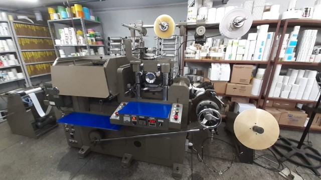 * Máquina p/ produção de etiquetas adesivas.